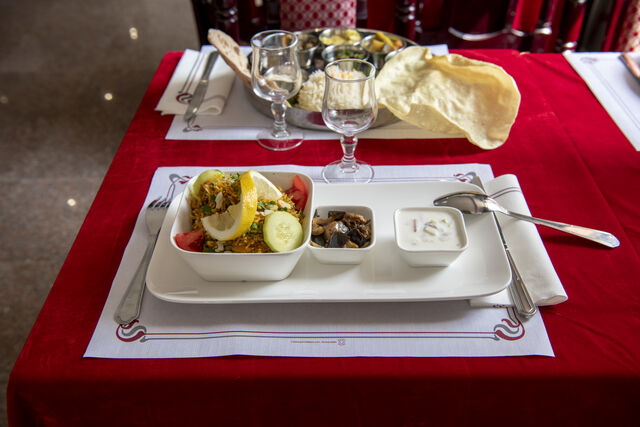 Thali : Plat complet végétarien servi avec chapatti et un dessert.